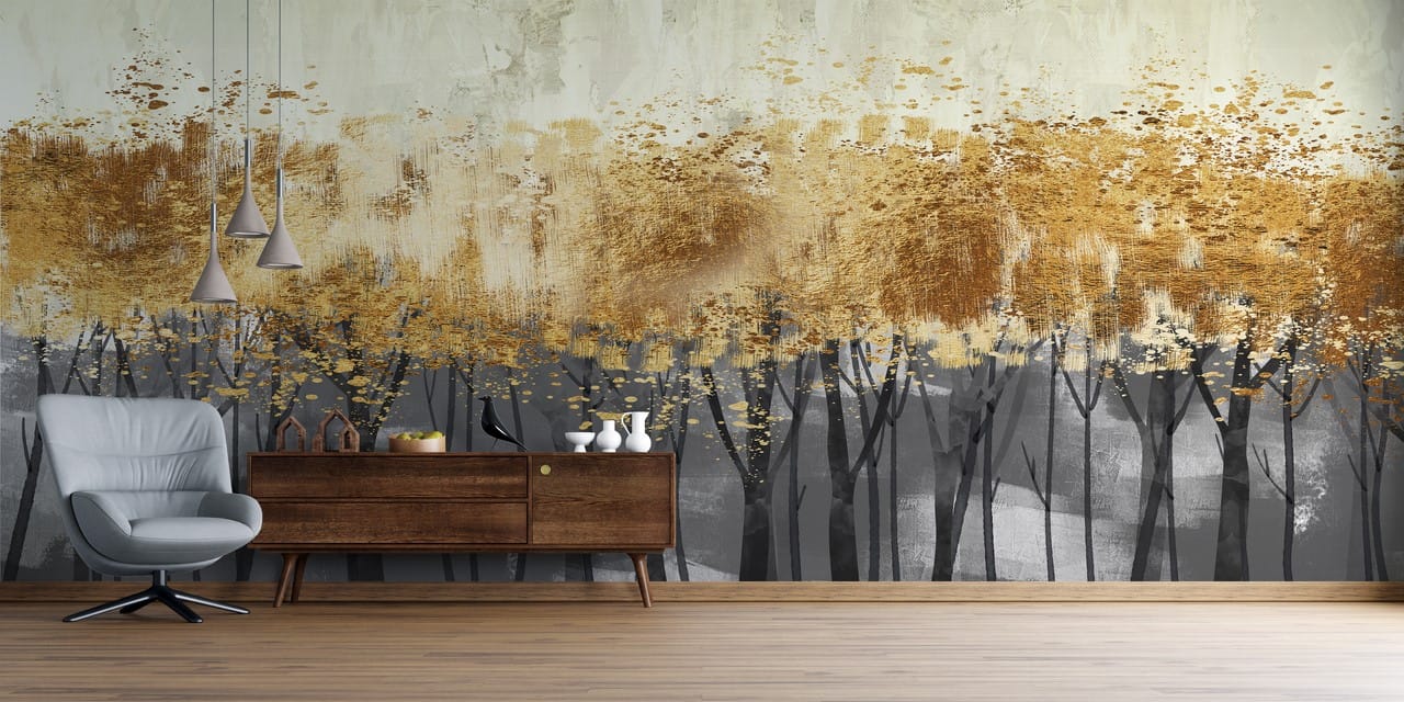 Poutavá fototapeta s originálním motivem, která vnese do každého interiéru nevšední atmosféru. Zobrazuje koruny stromů ve zlatých, velmi teplých barvách. Díky těmto barvám se hodí do všech místností s glamour zaměřením. Bez zlatých motivů si ji lze jen těžko představit. Skvěle se hodí i do drsnějších místností, které potřebují lehkou izolaci. Ideální do obývacího pokoje. Lze jej úspěšně použít i v ložnici.