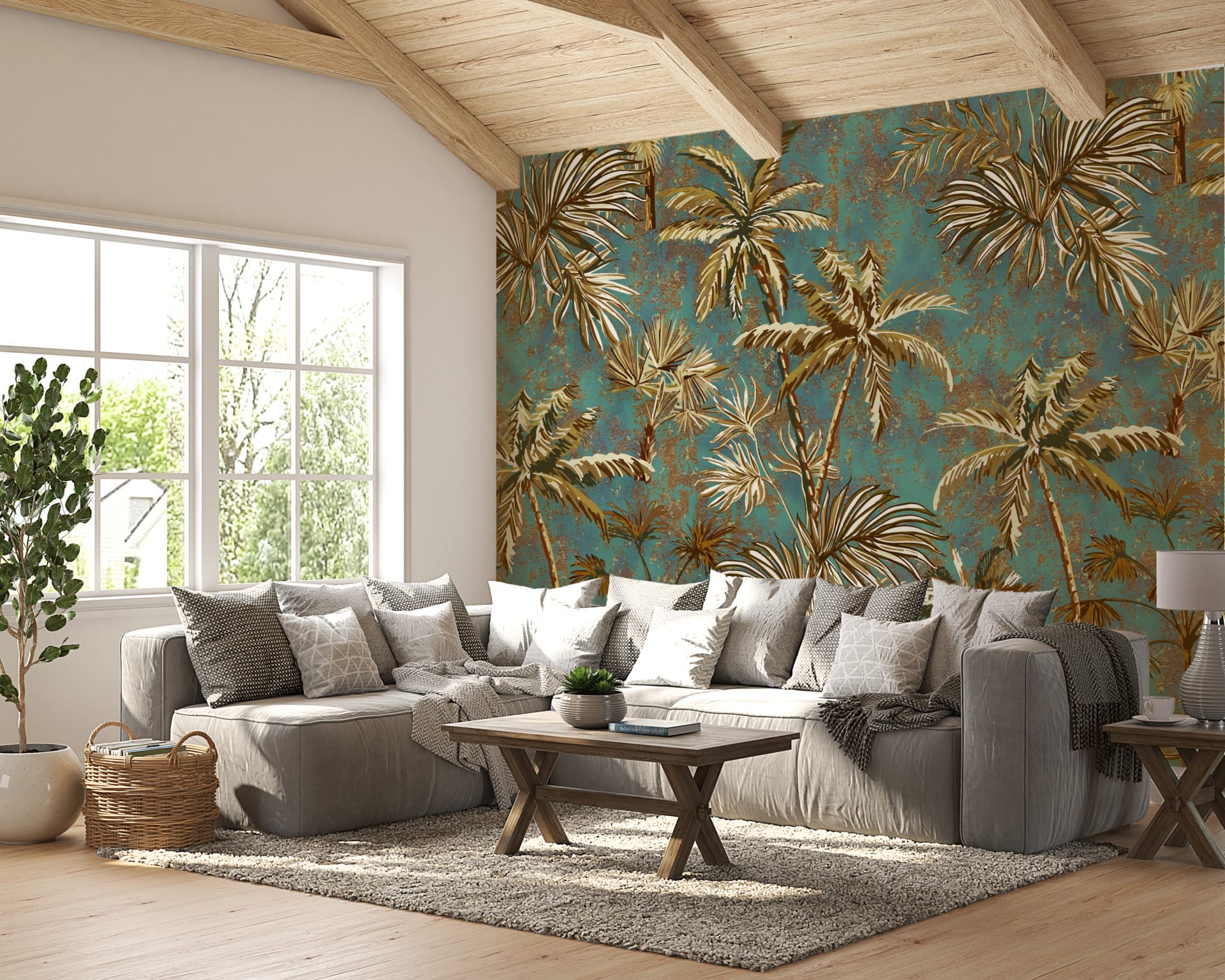 Fototapeta s tropickým motivem v luxusních barvách Golden Palms - hlavní obrázek produktu