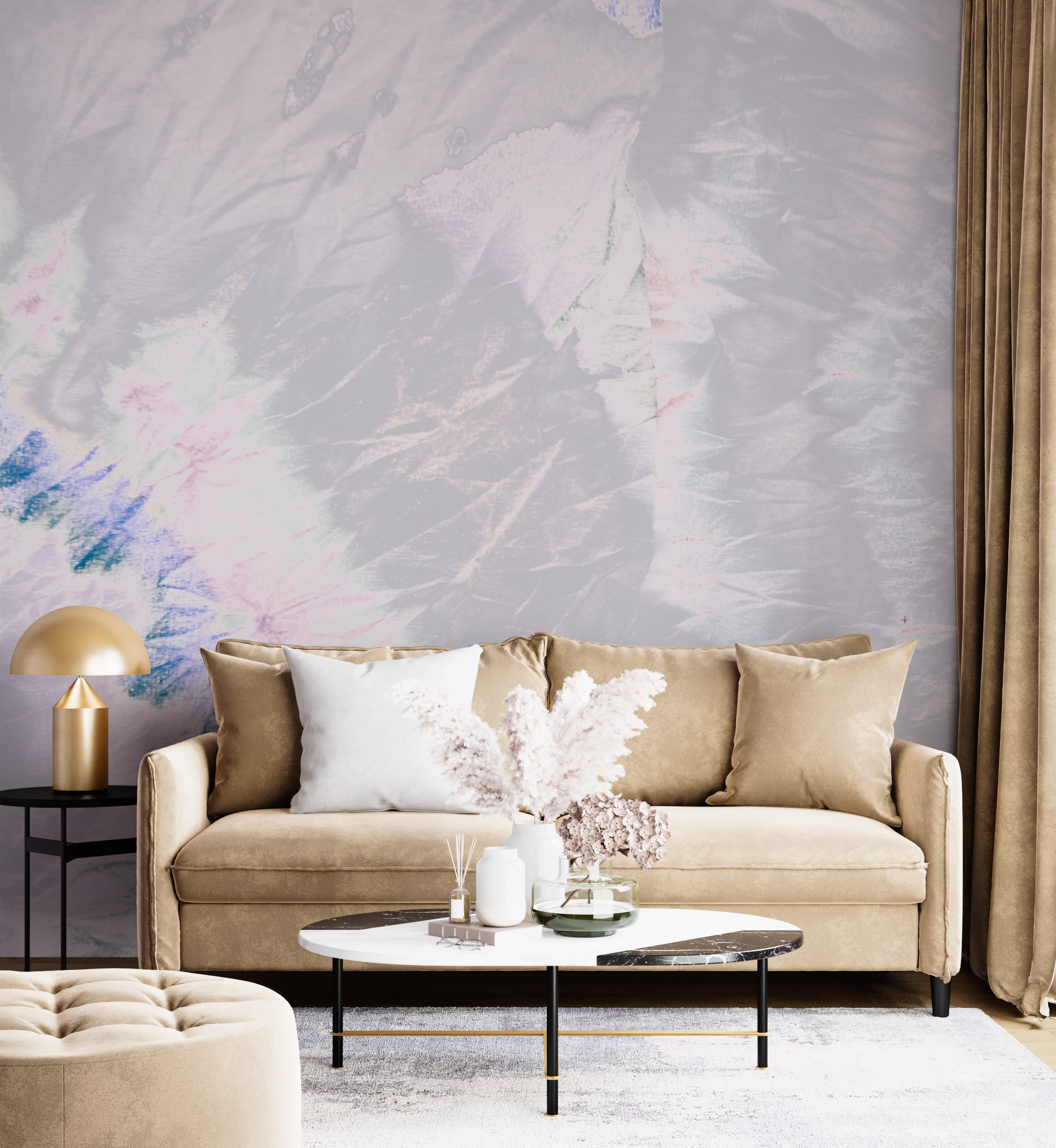Nástěnná malba v odstínech měkké fialové Crushed Abstraction - obrázek číslo 2