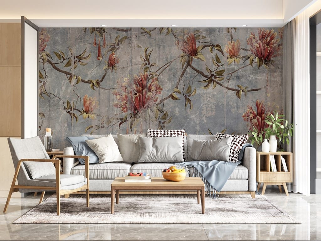 Nástěnná malba s třenými barvami a květinovým a rostlinným motivem Destroyed Floral Motif - hlavní obrázek produktu