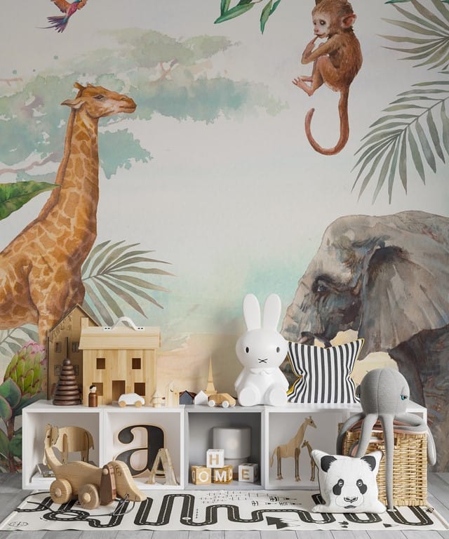 Jsou na něm vyobrazena africká zvířata, mimo jiné slon, žirafa a opice.